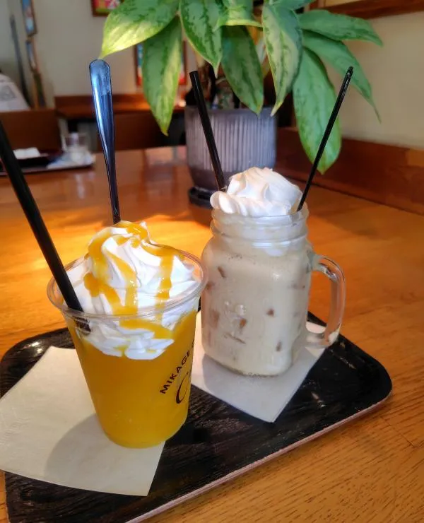 お出かけの休憩にマンゴーフラッペとミックスジュース🥭